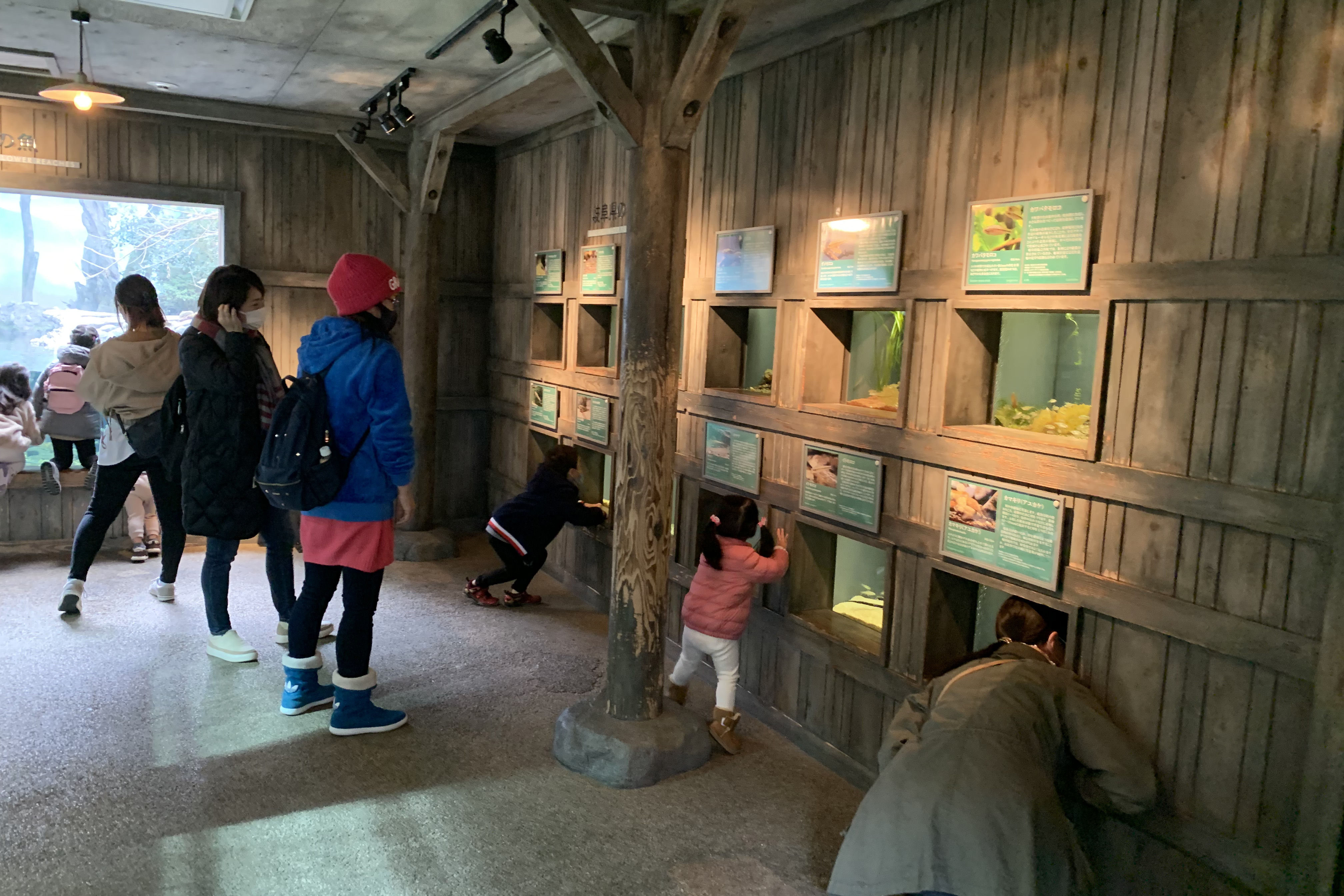 出迎えてくれたサンショウウオたち。オワコマさんにいろいろ教えていただく。